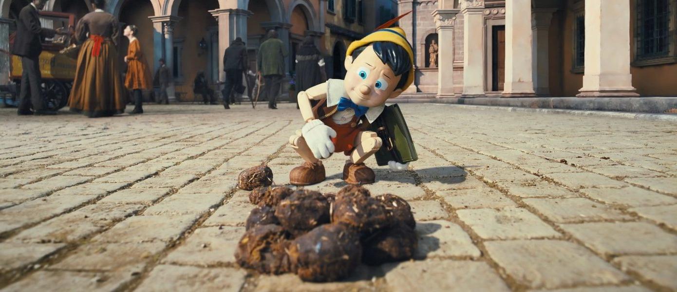 In Pinocchio(Disney), the titular character finds a pile of poop o…